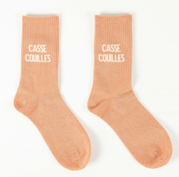 Chaussettes CASSE COUILLES€10.00 Les chaussettes messages à paillettes Coloris : Orange Rouille Taille unique (36 à 42) Extensibles Composition : 53% coton, 27% polyester, 18% fil métallique et 2% élasthanne. En stock - quantité de Chaussettes CASSE COUILLES + Ajouter au panier Catégories : Accessoires, Pour Elle Produits similaires Promo ! Chaussettes DOURO Verte – ATELIER SAINT EUSTACHE €23.00 Le prix initial était : €23.00.€18.00Le prix actuel est : €18.00. Choix des options Ce produit a plusieurs variations. Les options peuvent être choisies sur la page du produit Promo ! Chaussettes Blanches CONNASSE – FELICIE AUSSI €20.00 Le prix initial était : €20.00.€10.00Le prix actuel est : €10.00. Ajouter au panier Eventail PUTAIN DE CHALEUR Rouge €12.00 Ajouter au panier Promo ! Brassards Alex Rose/Jaune – PETITES POMMES €24.00 Le prix initial était : €24.00.€12.00Le prix actuel est : €12.00. Ajouter au panier