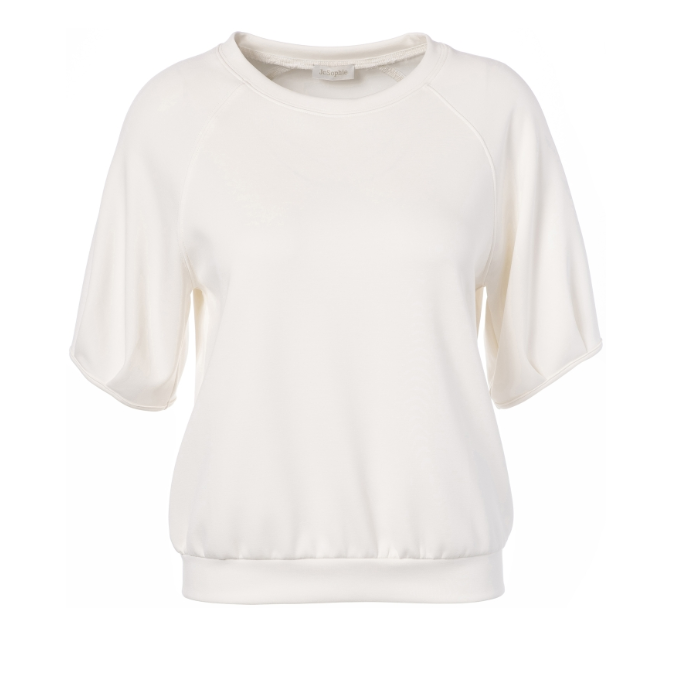 Sa coupe légèrement ample apporte une silhouette fluide et féminine, sans contraindre le corps. Le sweat Lindsey se distingue par son encolure ronde épurée et ses manches courtes à la coupe douce, qui renforcent son allure minimaliste et moderne. Les finitions soignées et la taille légèrement resserrée en bas de vêtement apportent une structure discrète, signature du style JC Sophie.